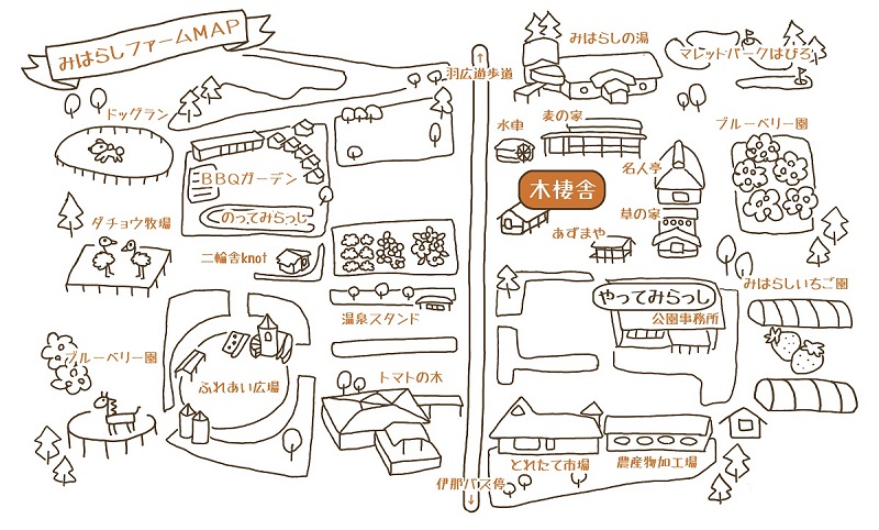 ウッドクラフト⽊棲舎は みはらしファームの⽚隅にある ⽊と森のサロン。