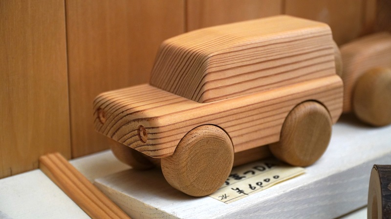 アイディア溢れる⽊のおもちゃ、ユニークなネーミングの⽊のミニカーなど